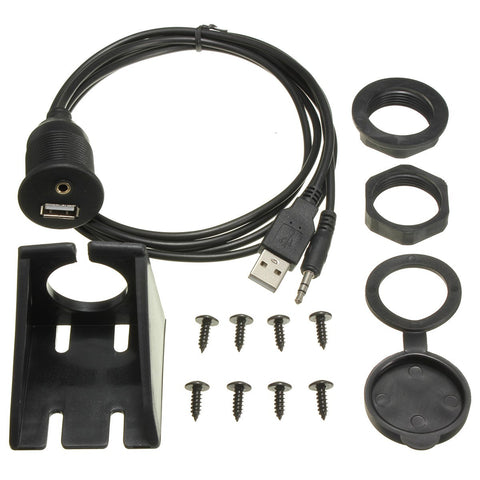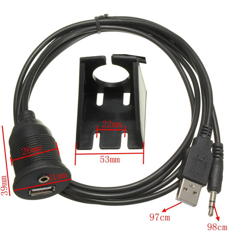 3.5mm USB 2.0 AUX Socket Extension Lead Panel Cable