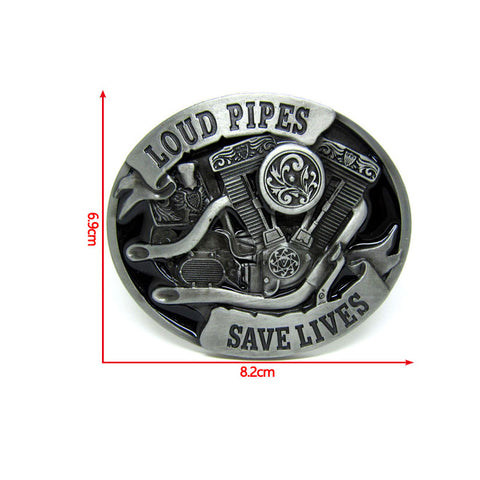 Loud Pipes Save Lives Motorcycle Engine Belt Buckle