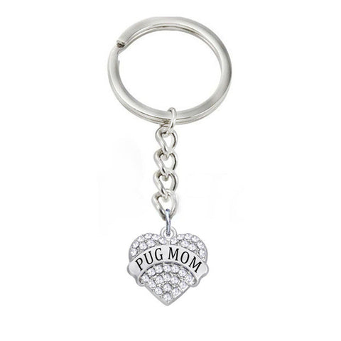Alloy Rhodium Plated Crystal Rhinesone Hearts Charms Pug Mom Keychains