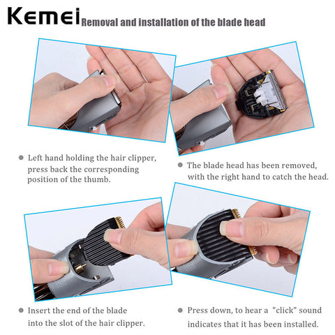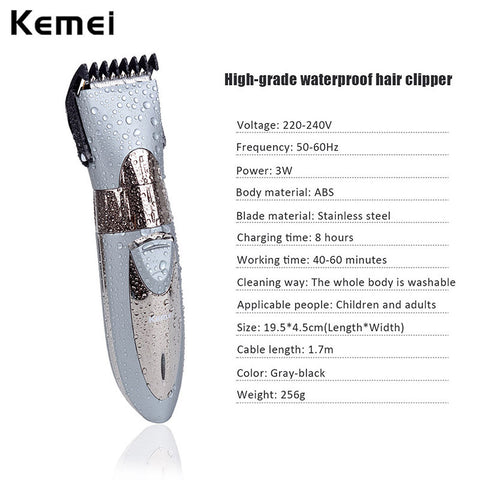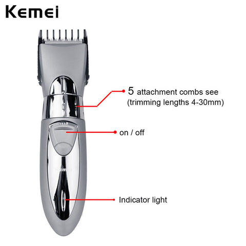 Item Type: Hair TrimmerMaterial: ABSModel Number: clippersCommodity Quality Certification: CEBrand Name: KemeiSize: 200-240Vitem : machine to cut hair