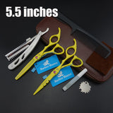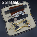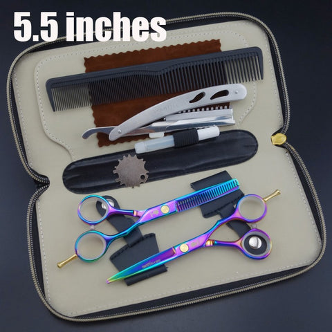 5.5 inches Professional Hair Scissors set ,Straight & Thinning barber shears,with razor, comb, oil, case