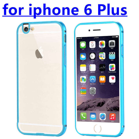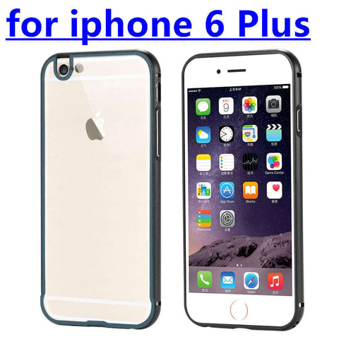 • Apple iphone 6 4.7 / i6 Plus 5.5 Metal Aluminum + Clear Transparent Acrylic Hard Back Cover Armor Shockproof