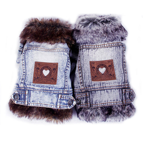 Denim Dog Clothes Winter Fur Collar Dog Coat Thick Warm Pet Clothes Jeans