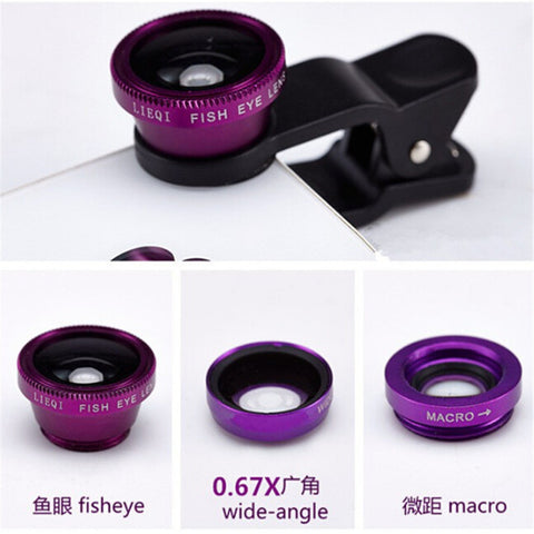 3in1 Clip On 180 Degreen Fisheye+Wide Angle+Macro Lens For Cell Phone Universal