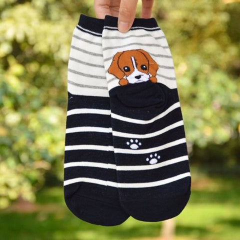 Animal Dogs Footprints Striped Cartoon Socks