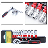 1/4" Ratchet Wrench Kit Chrome Steel Socket Wrench+Extension Rod +10 Sockets