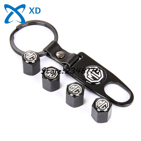Airtight Covers 4Pcs For MG Logo MG3 MG5 6 7 GT GS Car Wheel Tire Valve Stems Caps Stainless Steel With Leather Buckle Keychain